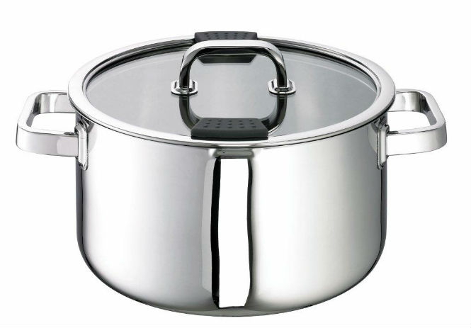 • hitzebeständiger, bruchsicherer Glasdeckel mit Silikon-Grips und Abgießöffnungen in der Deckelzarge
