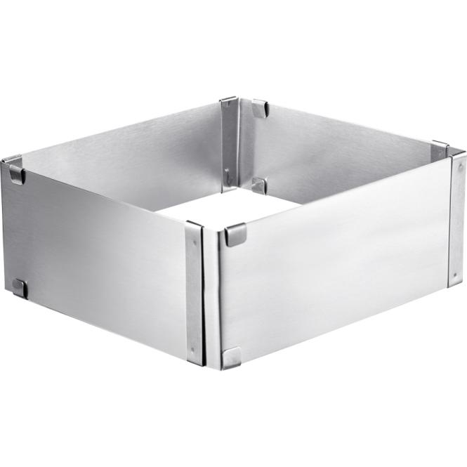 Sorgen Sie für einen echten Blickfang! Mit unserem Backrahmen erschaffen Sie die leckersten und schönsten Torten. Der extra hohe Rand ermöglicht das Schichten von verschiedenen Böden und Füllungen. Der Rahmen lässt sich einfach verstellen und mit den Klammern fixieren. So gelingt jedes Rezept im Handumdrehen.